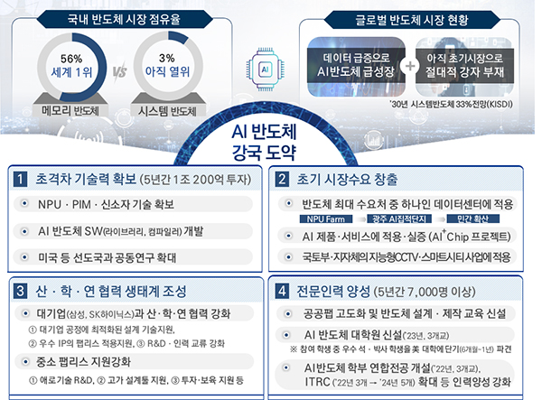 이어 “AI반도체 글로벌 시장을 선점하는 한편, 시스템반도체 전반의 경쟁력 강화로 확산될 수 있도록 적극 지원하겠다”고 밝혔다.