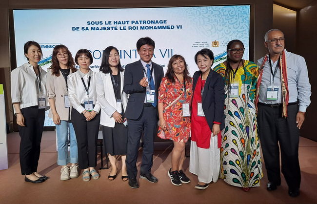 수원시 관계자를 포함한 대한민국 대표단이 모로코 마라케시에서 열린 유네스코 제7차 세계성인교육회의에 참가해 기념촬영을 하고 있다.