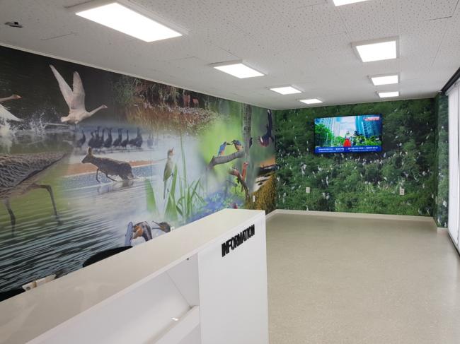 안내센터 내부는 안내대와 태화강에 서식하는 새, 야생동물, 꽃 사진들로 장식되어 있다.