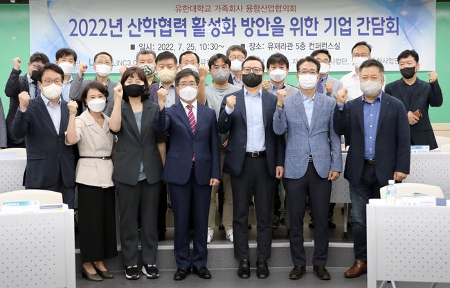 유한대학교가 25일 유재라관 5층 컨퍼런스실에서 `2022학년도 유한대학교 가족회사 융합산업협의회 산학협력 활성화를 위한 기업간담회`를 가졌다.