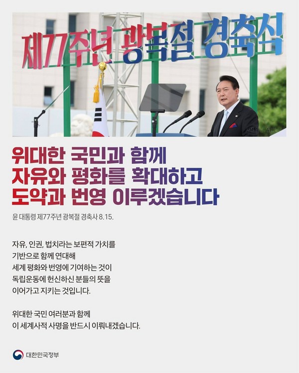 ☞[전문] 윤석열 대통령 제77주년 광복절 경축사