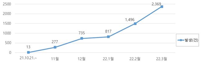 스토킹처벌법 시행(`21. 10. 21.) 이후 월별 스토킹범죄 발생건수