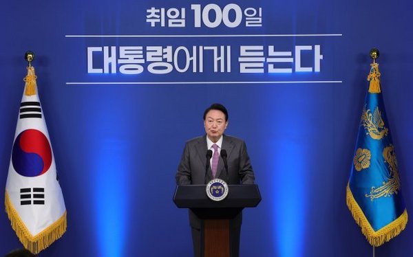 윤 대통령은 모두발언에서 향후 국정 방향 및 지난 100일 동안 추진해온 주요 국정과제에 대해 설명했다.