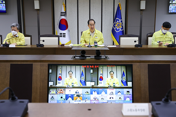 ▲ 한덕수 국무총리가 24일 정부세종청사에서 열린 코로나19 중대본회의에서 발언하고 있다.(사진=국무조정실)한 총리는 “지난 주말부터 코로나19 확산세가 다소 주춤한 모습이지만 학교 등교가 시작됐고, 추석연휴 등으로 이동과 접촉이 늘어날 수 있어 아직 안심할 단계는 전혀 아니다”며 “정부는 지금까지와 같이 긴장감을 늦추지 않고 취약계층을 최우선적으로 살피며 철저히 대응해 나가겠다”고 강조했다.