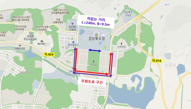 통제구간 : 천년숲 동․서로 L=240m, B=9.5m