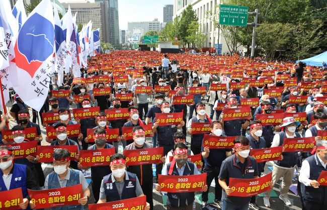 금융노조 총파업에는 집행부와 39개 지부 조합원 등 3만명(주최 측 추산)이 참가해, ▲임금 5.2% 인상 ▲주36시간(4.5일)제 시범 운영 ▲점포폐쇄 시 사전 영향평가제도 개선 ▲임금피크제 개선 ▲국책은행 지방이전 중단 등을 요구하고 나섰다. 이날 집회에서 박홍배 금융노조 위원장은 “공공기관을 민영화하고 노동 개악을 추진하는 윤석열 정권과 점포·고용을 줄이고 주주 배당에 목숨을 건 금융사용자들에 맞서 금융의 공공성을 사수해야 한다”고 외쳤다.