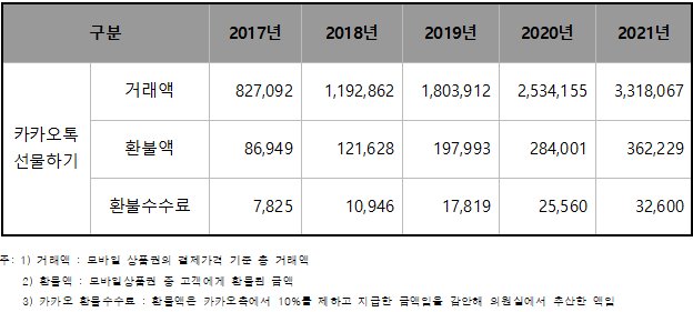 • 선물받기 환불하면 10% 수수료, 카카오 환불수수료 수익만도 924억원