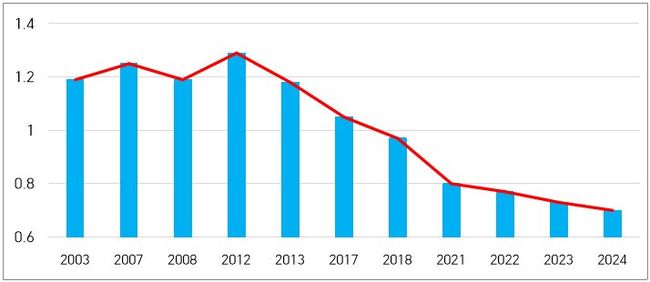 서정숙 국회의원은 “우리나라의 합계출산율은 제1차 저출산‧고령화 기본계획이 수립된 2006년 이후 이명박 정부와 박근혜 정부를 거칠 때까지만 해도 1.2명 수준을 유지했다”며 “하지만 19대 문재인 정부가 들어선 2017년 1.05를 끝으로 가임여성 1명 당 1명 미만의 상태(2021년 0.81)로 추락하기 시작했다”고 말했다.
