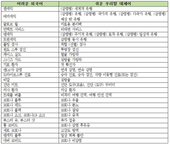 문체부와 국어원은 ‘멀티데믹’처럼 어려운 용어 때문에 국민이 정보에서 소외되지 않도록 ‘감염병 복합 유행’과 같이 쉬운 말로 발 빠르게 다듬고 있다. 선정된 말 외에도 일반 국민이 이해하기 쉬운 다른 우리말 대체어가 있다면 사용할 수 있다. 앞으로도 문체부와 국어원은 정부 부처와 언론사가 주도적으로 쉬운 말을 사용할 수 있도록 계속 홍보할 계획이다.