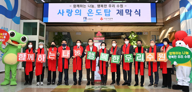 [일간환경연합 김경훈 기자] 수원시는 5일 시청 본관 로비에서 ‘사랑의 온도탑’ 제막식을 열고, ‘희망 2023 나눔캠페인’을 시작했다고 밝혔다.