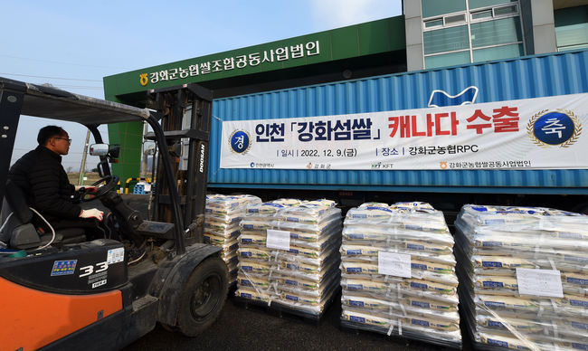 인천광역시는 12월 9일 강화군 농협쌀조합공동사업법인(RPC) 광장에서 ‘강화섬 쌀’ 20톤의 상차 행사를 개최하고 첫 해외 수출을 축하했다고 밝혔다. 이번에 수출길에 오르는 쌀 20톤은 오는 12일 부산항을 통해 캐나다로 수출 예정이라고 밝혔다.