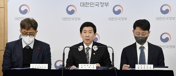 ▲ 최상대 기획재정부 차관이 26일 서울 종로구 정부서울청사에서 열린 ‘공공기관 기능조정 및 조직·인력 효율화 계획 브리핑’에서 주요내용을 발표하고 있다. (사진=기획재정부)