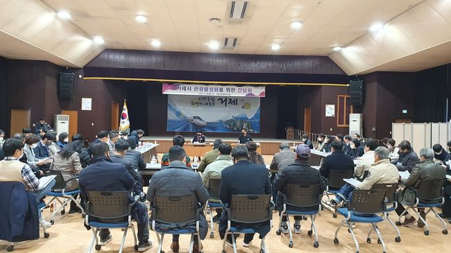 [일간환경연합 김경훈 기자] 거제시는 지난 28일 거제시청 블루시티홀에서 거제해양관광개발공사, 외식업, 숙박업, 여행업 등의 관광사업체, 관광관련 단체 및 시민 등 약 70여명을 초청하여 거제시 관광의 현안을 함께 점검해 보고, 관광활성화 방안을 마련하고자 간담회를 개최하였다고 밝혔다.