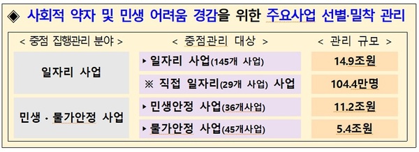 특히 일자리사업과 민생·물가안정 사업을 중점 집행관리 분야로 삼고 밀착 관리한다.