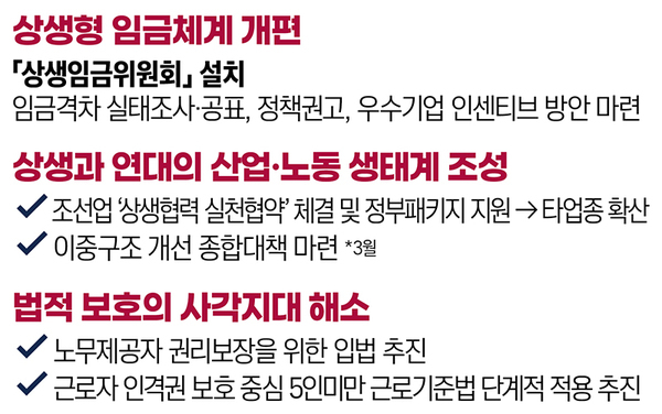 상생과 연대의 산업·노동 생태계를 조성해 이중구조를 개선하고 노동시장의 약자를 보호한다.