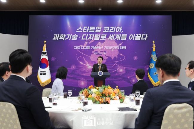[일간환경연합 신상미 기자] 중소벤처기업부는 윤석열 대통령이 2월2일 용산 대통령실에서 국제전자제품박람회(CES, Consumer Electronics Show) 2023 디지털 기술혁신 기업 CEO 40여명과 가진 오찬 간담회에 이영 중소벤처기업부 장관도 참석했다고 밝혔다.