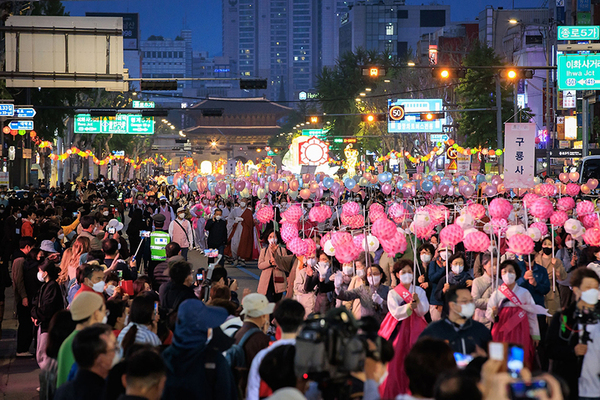▲ 지난해 5월 2일 서울 종로구 일대에서 부처님오신날을 축하하는 연등회가 열리고 있다.(사진=문화체육관광부 국민소통실)개정안에는 올해부터 부처님오신날, 기독탄신일 등에 대해 대체공휴일 제도를 적용하는 내용이 포함돼 있다.