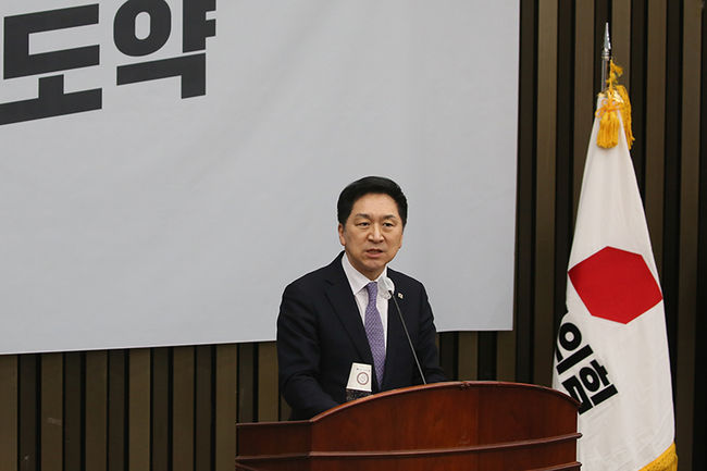 16일 오후 국회 본청에서 진행된 국민의힘 정책의원총회에서 김 대표는 "오늘 정책의총을 통해서 우리 당이 방향을 설정할 수 있는 기회를 갖게 돼 감사하다"며 "어제 이재명 대표를 별도로 찾아뵙고 만나 시급한 민생현안과 관련된 법안과 여러가지 정책적 어젠다에 대한 야당의 협조를 간곡하게 부탁드렸다"고 밝혔다.
