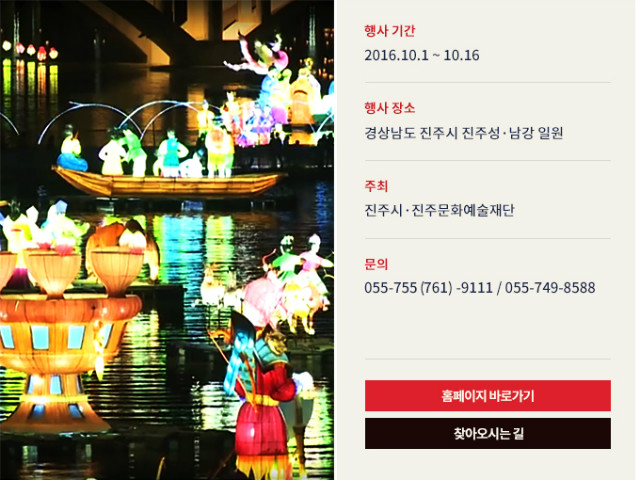 [일간환경연합 장민주 기자]진주강남유등축제 입니다. 물 불 빛의 향연이 펼쳐지는 축제 주요 행사및 프로그램을 확인하고 즐기세요!