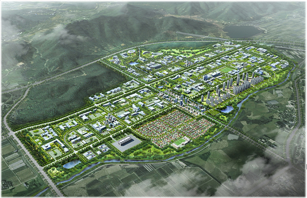 ▲ 밀양 나노융합 스마트그린 국가산업단지 조감도.스마트그린 산단은 입주기업과 기반시설·주거시설·지원시설 및 공공시설 등의 디지털화, 에너지자립 및 친환경화를 추진하는 미래형 산업단지를 말한다. 이산화탄소 배출량을 25% 이상 감축하는 것이 목표다.