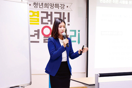 | 지효선 (주)파워PT 전임교수는 자기소개서의 중요성과 함께 자신만의 강점을 어필하는 방법에 관한 조언을 들려줬다.(사진=청년희망재단) |