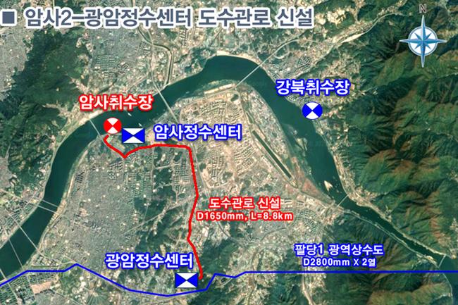 [일간환경연합 김경훈 기자] 서울시는 광암아리수정수센터에 오는 2028년까지 사업비 654억원을 들여, 강동구에 위치한 암사취수장에서부터 8.8㎞ 이르는 전용 원수 공급 관로를 건설키로 했다.