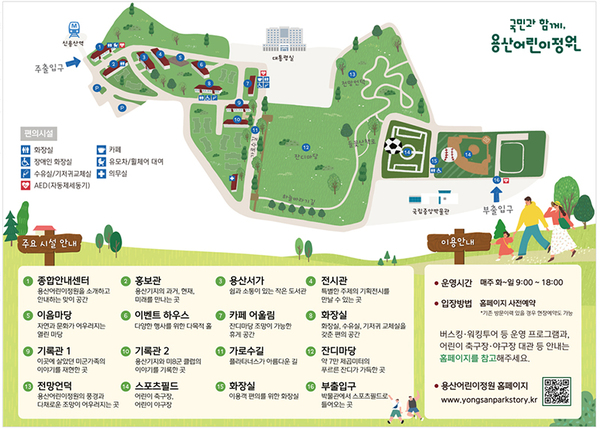 ▲ 용산어린이정원 시설안내.용산어린이공원은 사전 예약을 거쳐 입장할 수 있다. 예약은 25일 오전 11시부터 용산어린이정원 누리집(yongsanparkstory.kr)을 통해 할 수 있다.