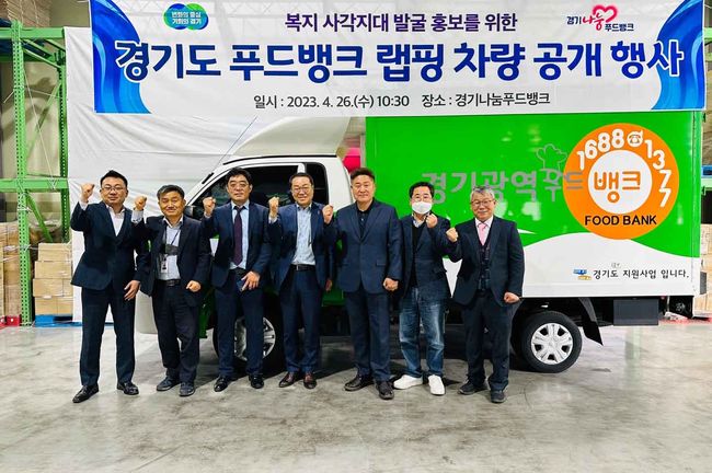 경기도, 곳곳 달리는 푸드뱅크 차량으로 복지사각지대 발굴 (사진제공=경기도청)경기도는 26일 경기도사회복지협의회 및 경기도푸드뱅크연합회와 함께 경기광역푸드뱅크(화성시 정남면 소재)에서 복지사각지대 발굴 홍보를 위한 ‘푸드뱅크 랩핑 차량 공개행사’를 개최했다.