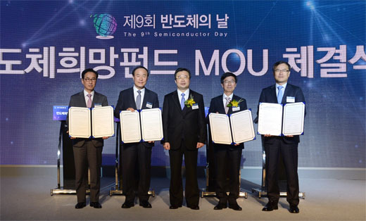 삼성전자, SK하이닉스, 한국산업은행, 한국성장금융은 27일 반도체 희망펀드 투자협약 양해각서(MOU)를 체결했다고 산업통상자원부가 밝혔다.