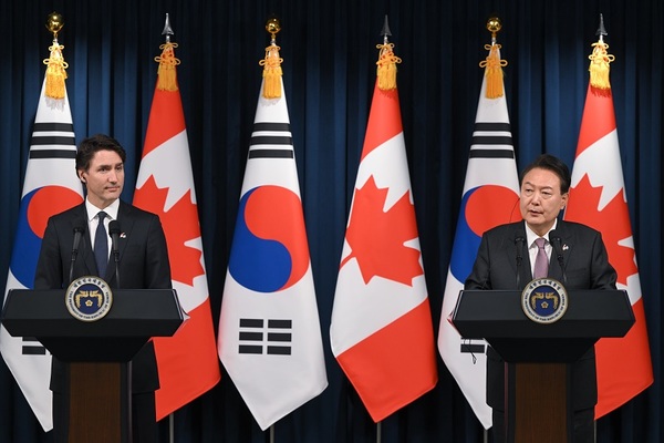 [일간환경연합 장영기 기자]윤석열 대통령과 저스틴 트뤼도 캐나다 총리는 17일 정상회담을 갖고 한-캐나다의 외교관계 수립 60주년을 축하하고, 양국 우호관계의 강력함과 깊이를 재확인했다.