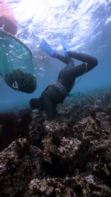 | 바다에 대한 지식을 통해 해산물을 채취하는 제주해녀. |