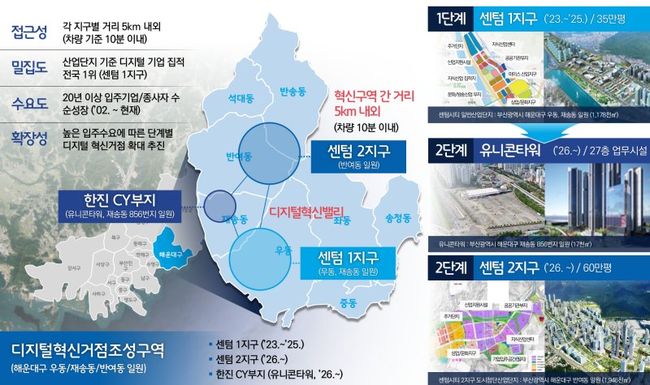 부산시는 “국·내외 유수의 디지털 기업이 입주해 있는 센텀시티를 판교와 같은 디지털 융복합 허브로 조성”하겠다는 비전하에 동 시범사업(‘23~‘25)을 추진하며, 센텀1지구 내 센텀벤처타운(7층 규모), 센텀캠퍼스(18층 규모) 등 앵커시설에 지역 내 디지털 기반(인프라), 앵커기업, 연구소 등을 집적시킨다는 계획이다.
