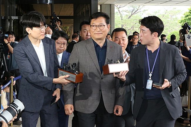 송 전 대표는 이날 오전 9시23분쯤 서울 서초동 서울중앙지검에 도착했다. 송 전 대표는 곧장 청사 안으로 들어가 수사팀에 면담을 요청했지만 검찰 거부로 조사는 이뤄지지 않았다.