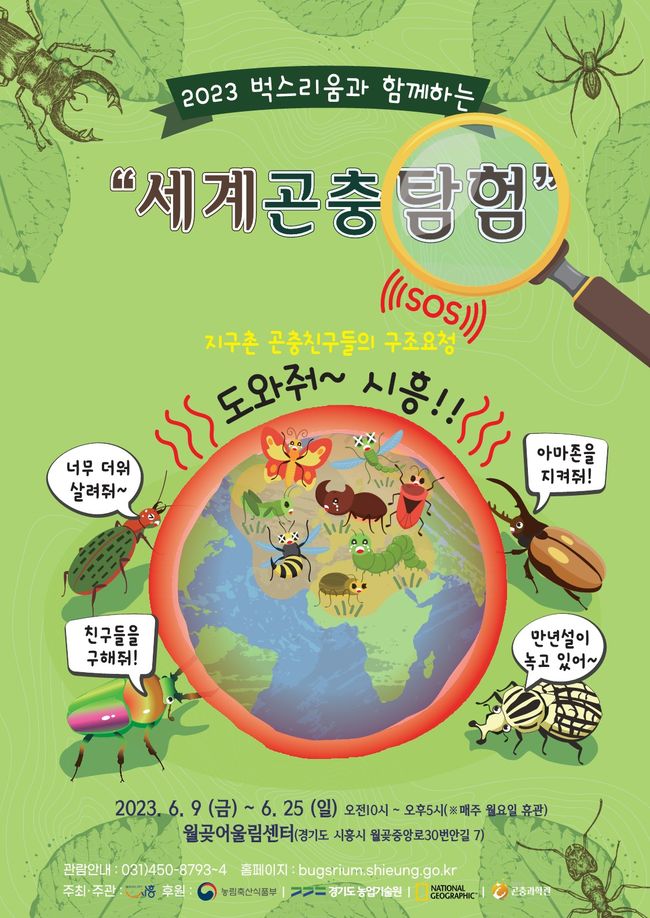 이번 ‘세계곤충탐험’은 시흥시가 주최·주관하고 농림축산식품부, 경기도농업기술원, 국립과천과학관, 남원백두대간생태교육장, 서울호서곤충과학관 등 다양한 기관의 후원을 받아 운영된다.