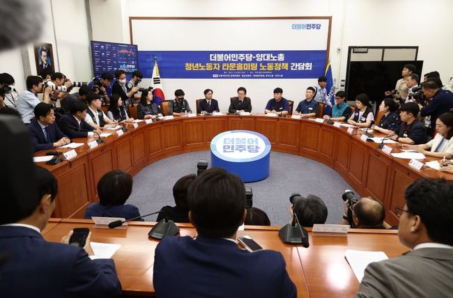 이 대표는 "양대 노총 소속의 노동자들이 한 자리에 모여 있다는 것도 매우 의미 있는 일이고, 특히 최근에 벌어지고 있는 정부의 노동탄압에 우리가 함께, 그 현실을 이야기하고 대응책을 논의한다는 의미도 각별한 것 같다"며 "허심탄회하게 여러분의 말씀을 겸허하게 듣고, 당이 할 수 있는 일이 어떤 것인지 함께 고민해 보도록 하겠다"고 말했다.