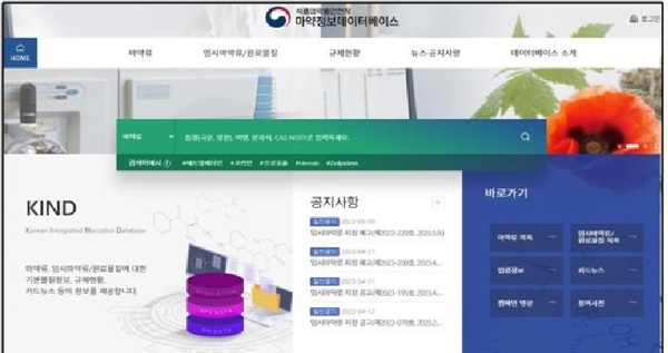 ▲ 마약정보데이터베이스 메인화면 예시.(사진=식품의약품안전처)마약정보데이터베이스는 마약 142종, 향정신성의약품 300종, 대마 3종 등 마약류를 비롯해 임시마약류 100종, 원료물질 37종 등 총 582종에 대한 정보를 담고 있다.