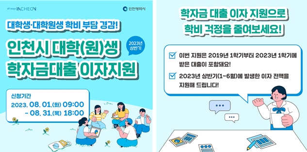 인천시, 대학(원)생 학자금대출 이자 지원 ... 8월 1일부터 접수