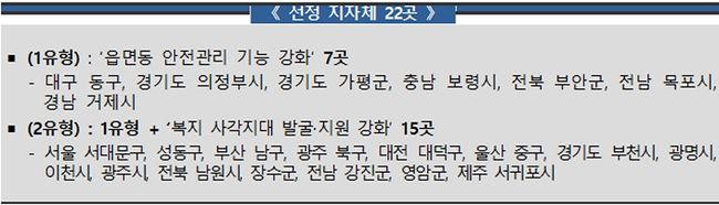 행정안전부는 `2023년 읍면동 스마트 복지 · 복지안전서비스 개선모델 개발 지원사업` 공모를 통해 최종 22곳을 지원대상으로 선정했다.