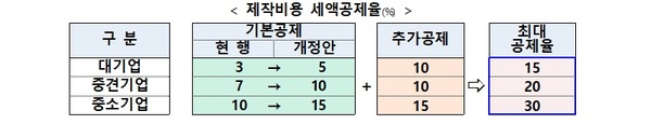 이에 따라 최대 공제율이 중소기업 30%, 중견기업 20%, 대기업 15%로 획기적으로 높아진다.