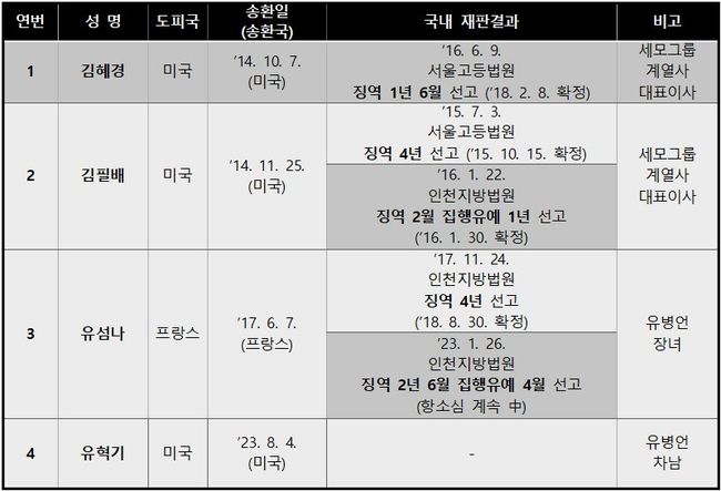 유혁기는 세월호 사건과 관련하여 미국, 프랑스 등 국외로 도피한 4명 중 법무부가 국내로 송환하는 마지막 범죄인이다.