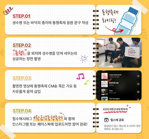 또 온 국민 힘 모으기를 통한 경제활력(氣up)의 염원을 담아 물병을 던져서 세우는 ‘동행축제 기업(氣up)’ 챌린지를 진행하고, 챌린지 참여자 중 355명에게 스타일러, 무선청소기, 온누리상품권 등의 경품도 제공한다.