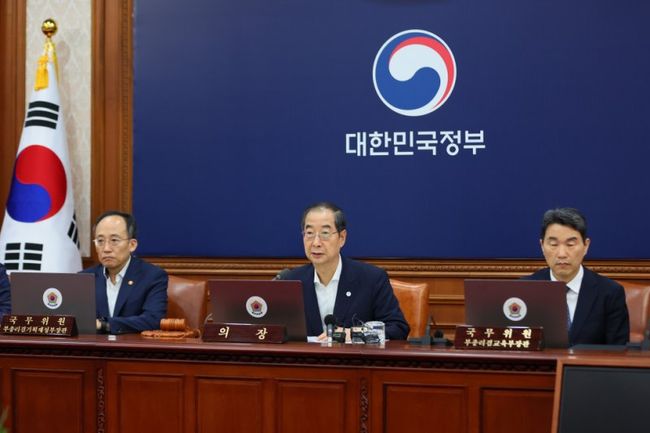 한덕수 국무총리가 5일 세종대로 정부서울청사에서 열린 국무회의를 주재, 모두발언을 하고 있다.한 총리는 5일 정부서울청사에서 주재한 국무회의 모두발언에서 "국민 여러분께는 휴식과 재충전의 시간을 드리고 국가 경제 차원에서는 내수 진작을 위한 계기를 마련하기 위한 것"이라며 이같이 말했다.