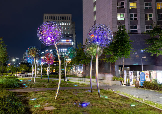 마곡역존에 설치된 민들레는 약 5m 높이의 LED 조명 9개로 마곡문화거리를 대표하는 상징물이 될 것으로 기대되고 있다.