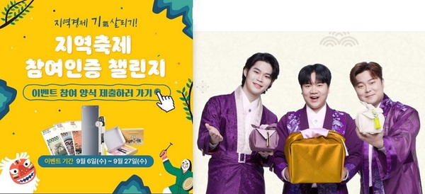 ▲ 지역축제 참여인증 챌린지.(사진=동행축제 누리집)지역행사 방문 인증 캠페인은 동행축제 연계 지역행사를 홍보하고, 지역주민뿐만 아니라 외지 관광객의 방문까지 유도해 지역경제를 활성화하기 위해 마련했다.