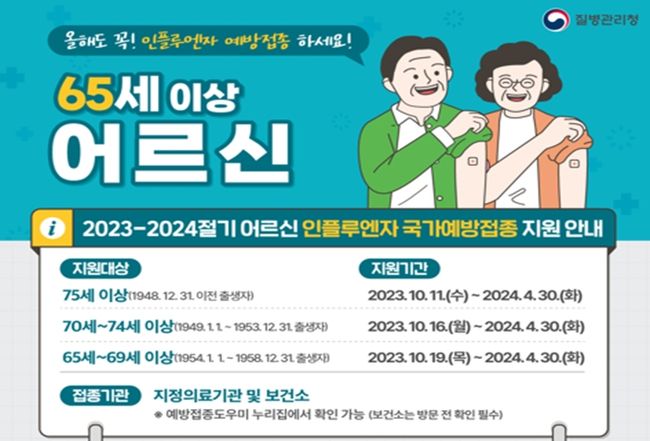 임산부는 10월 5일부터, 75세 이상은 10월 11일, 70세 이상은 10월 16일, 65세 이상은 10월 19일부터 무료 접종이 시작된다.