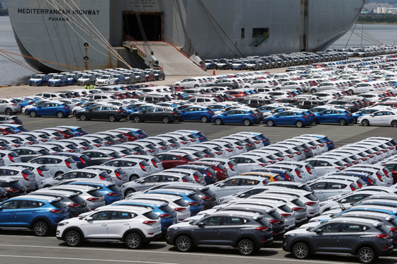 현대차 울산공장 선적부두에서 선적하고 있다.<사진=연합뉴스 제공> |