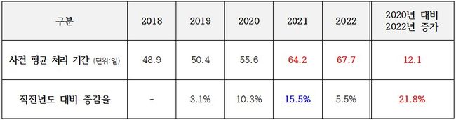 서울청, 부산청, 대전청, 경북청, 경남청, 제주청의 경우 2021년 이후 가파른 증가세를 보이며 2022년에는 사건 평균 처리 기간이 70일을 넘기는 상황까지 왔으며, 세종청, 충남청, 전북청의 경우 무려 80일을 넘기는 것으로 나타났다.