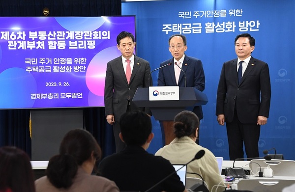 정부는 26일 정부서울청사에서 추경호 부총리 겸 기획재정부 장관 주재로 제6차 부동산 관계장관회의를 열고 이같은 내용이 담긴 ‘국민 주거안정을 위한 주택공급 활성화 방안’을 발표했다.