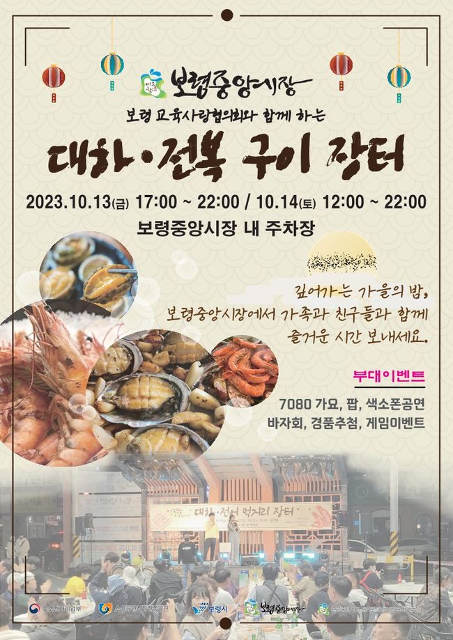 [일간환경연합 김경훈 기자] 보령시는 오는 13일과 14일 양일간 중앙시장 제1주차장에서 대하·전복 구이 장터를 개최한다고 밝혔다.
