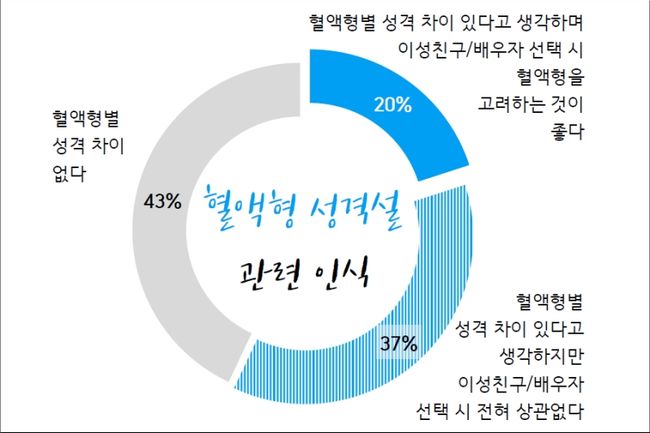 혈액형 성격설 믿는 사람 중 36%, `이성친구·배우자 선택 시 혈액형 고려하는 것이 좋다`